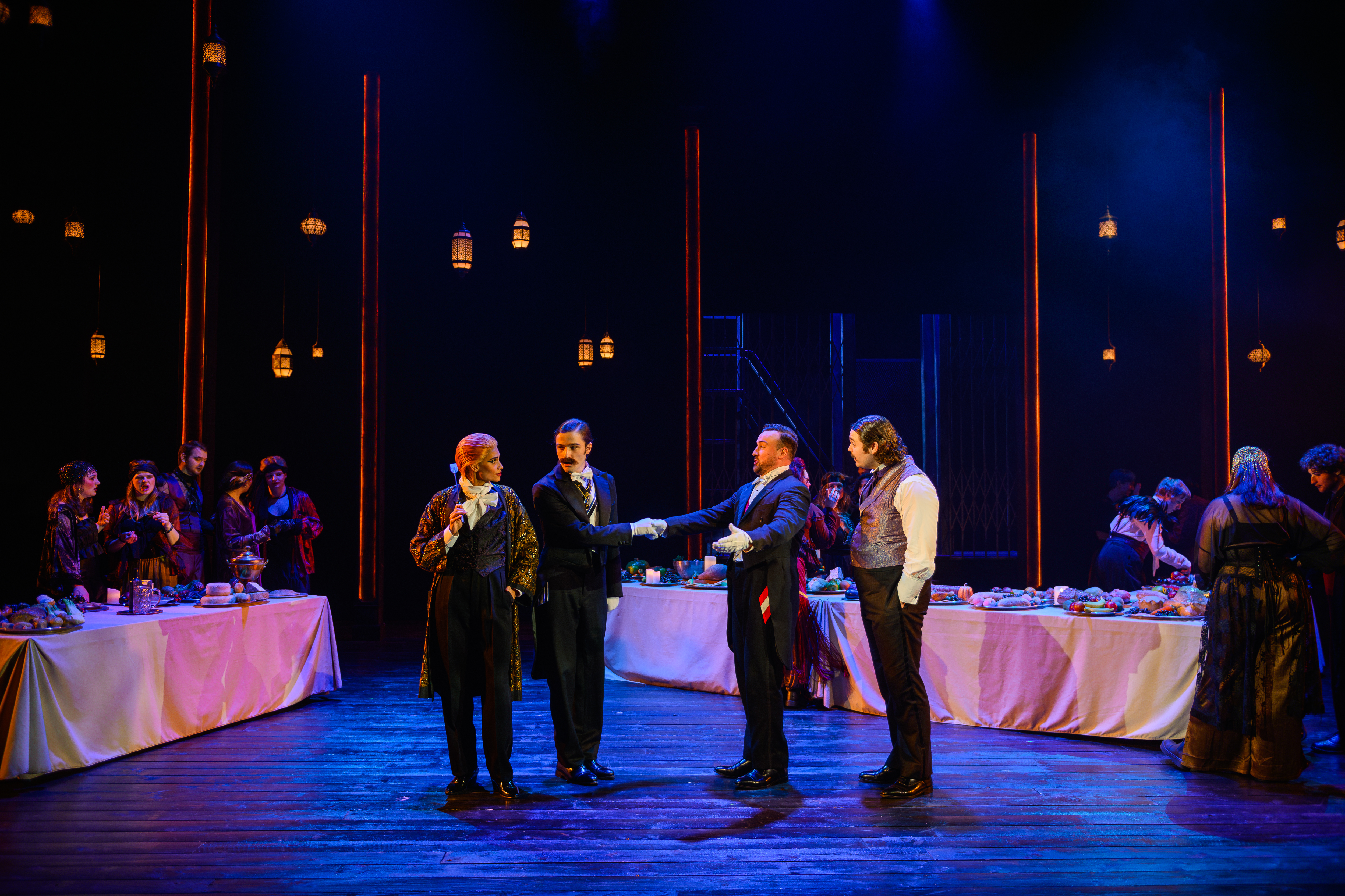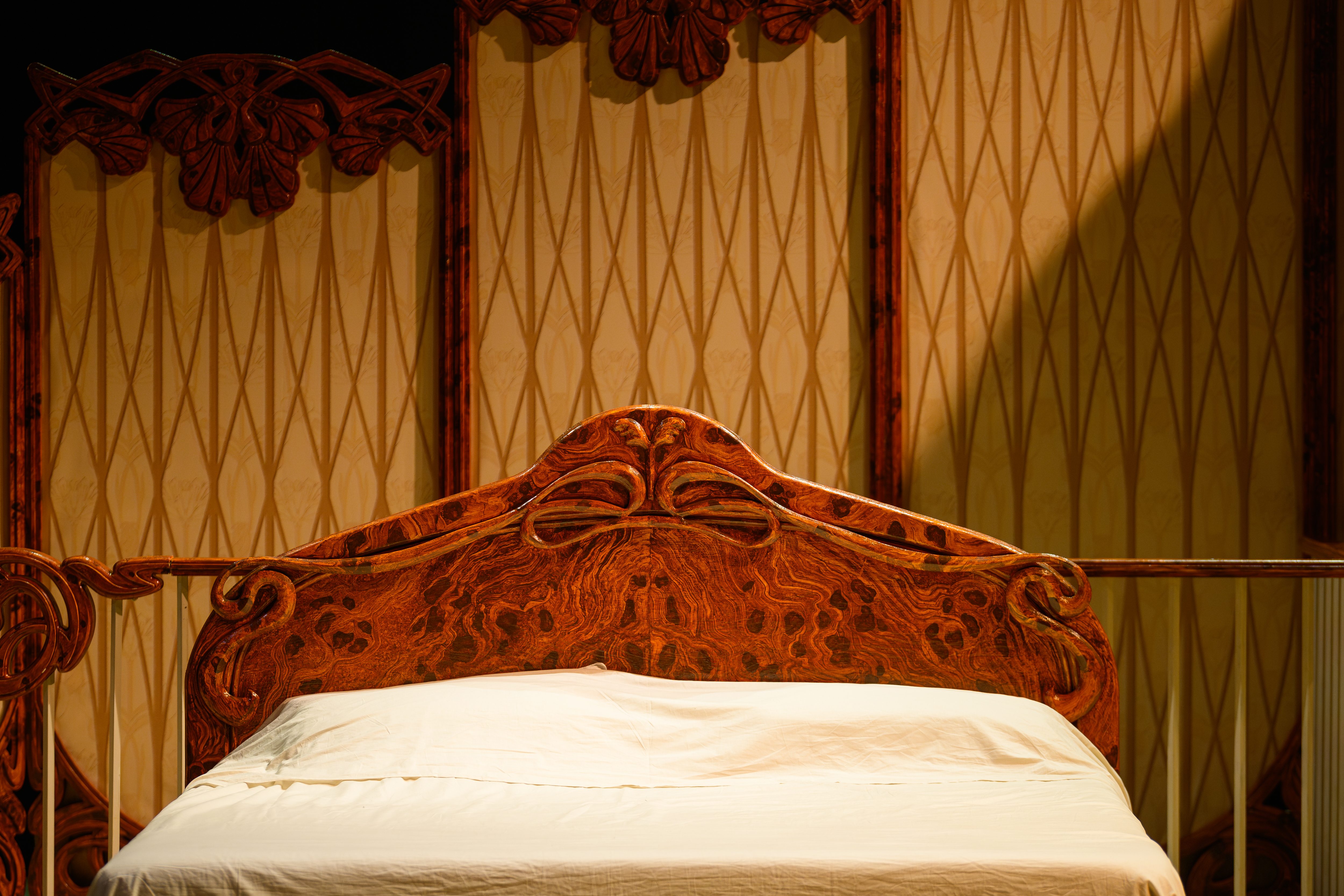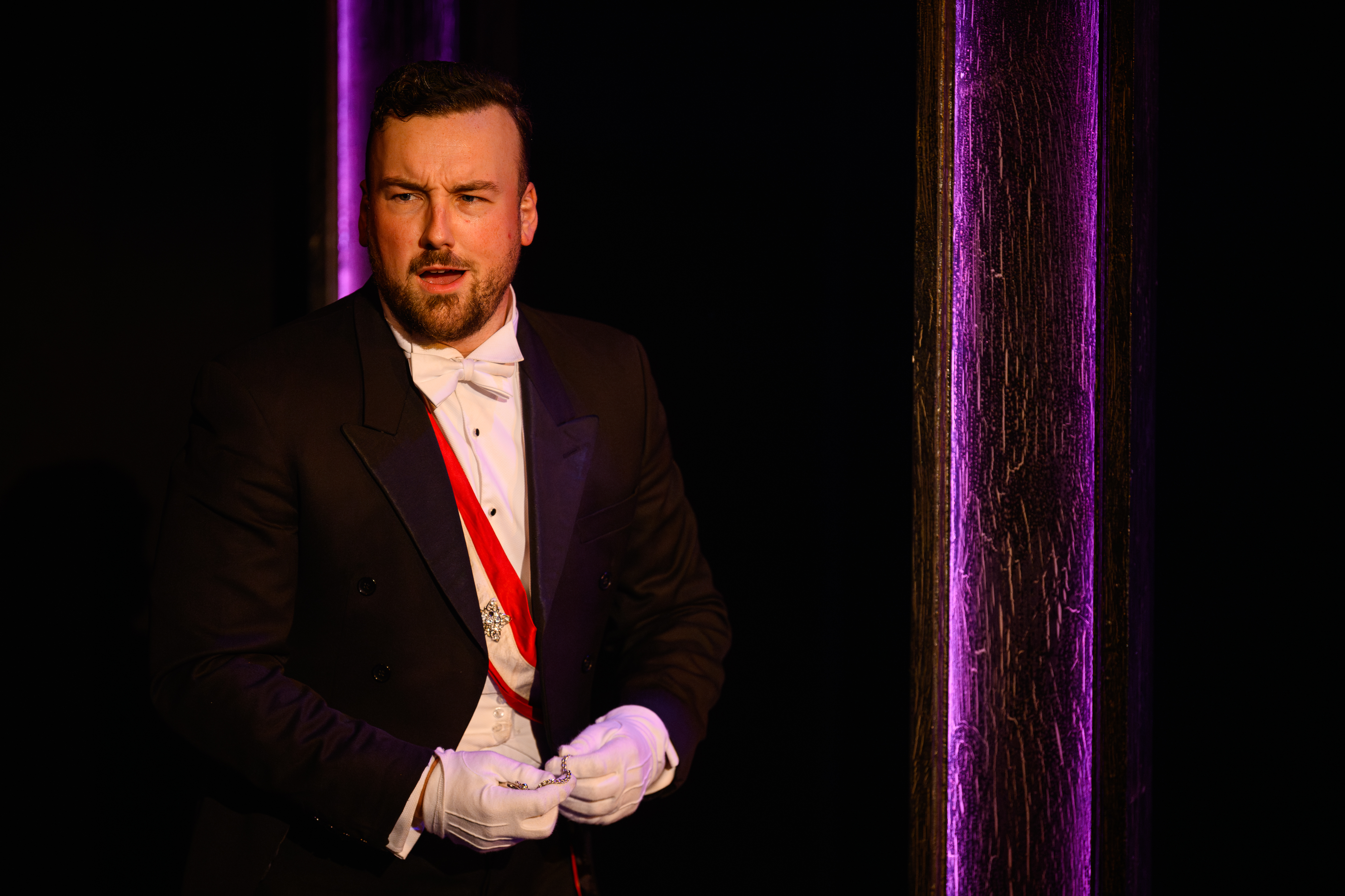 Scenic painting for Die Fledermaus, (2024). Designed by Adam Wiltshire for Silk Street Theatre (GSMD). Photography by David Monteith-Hodge.