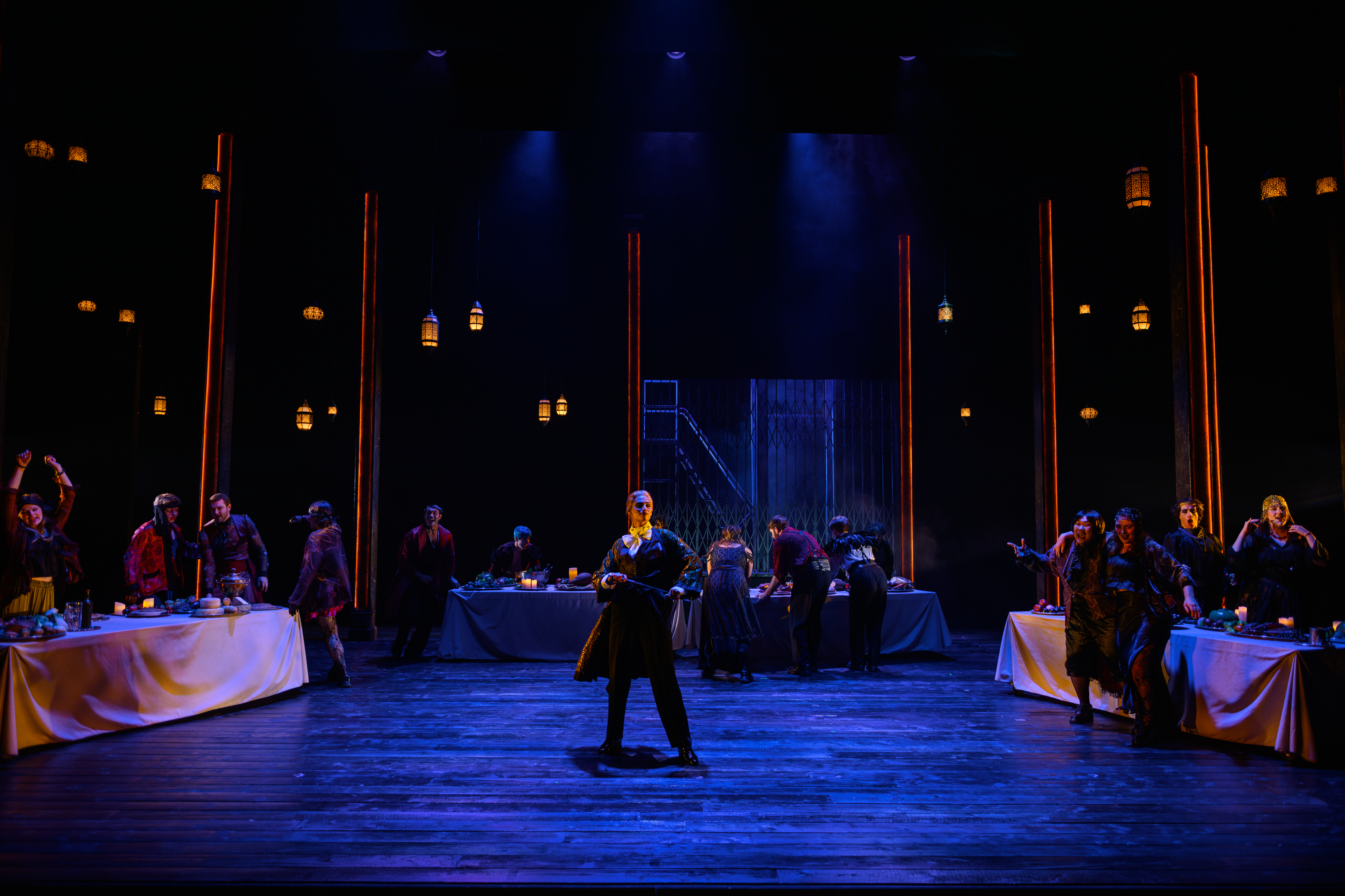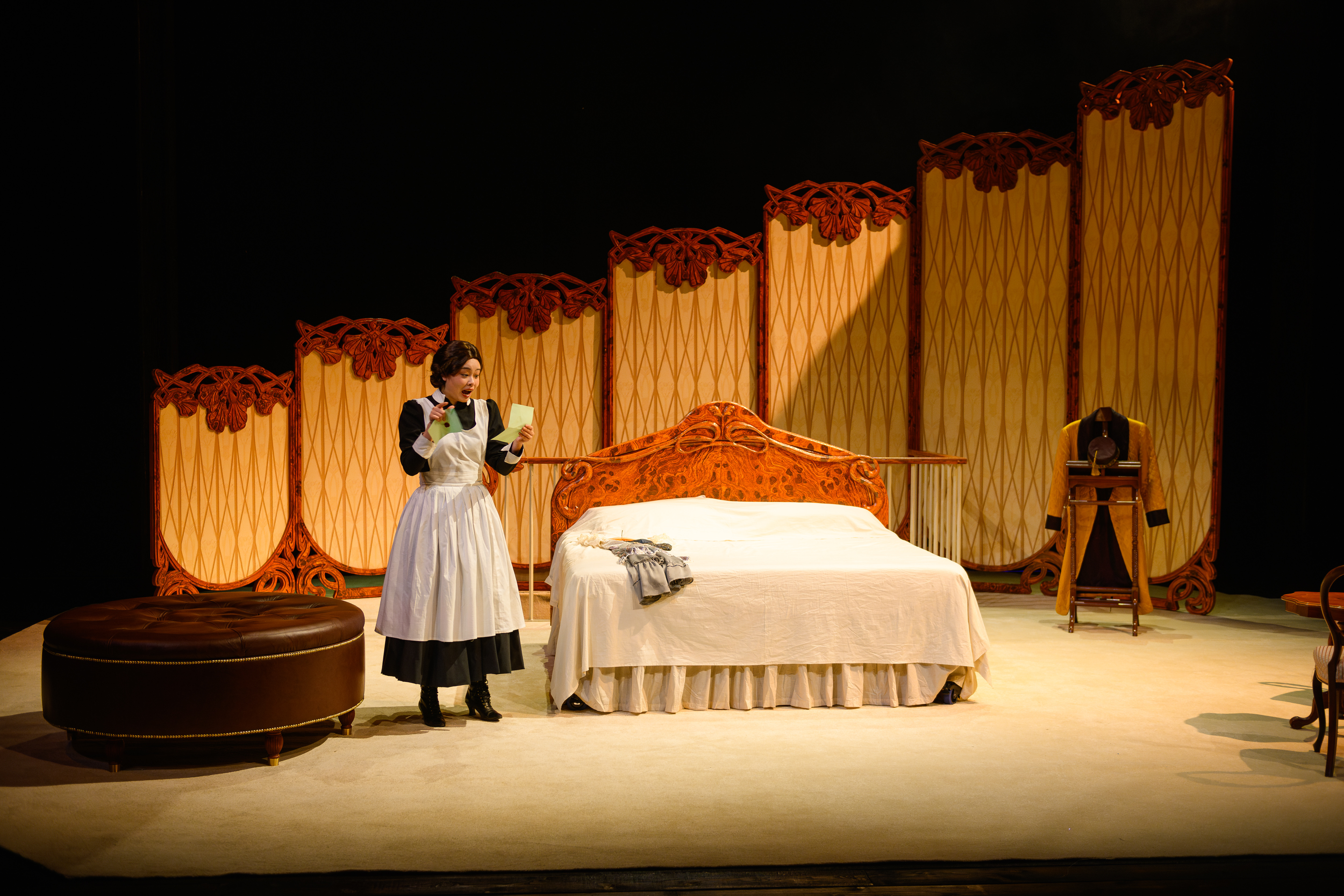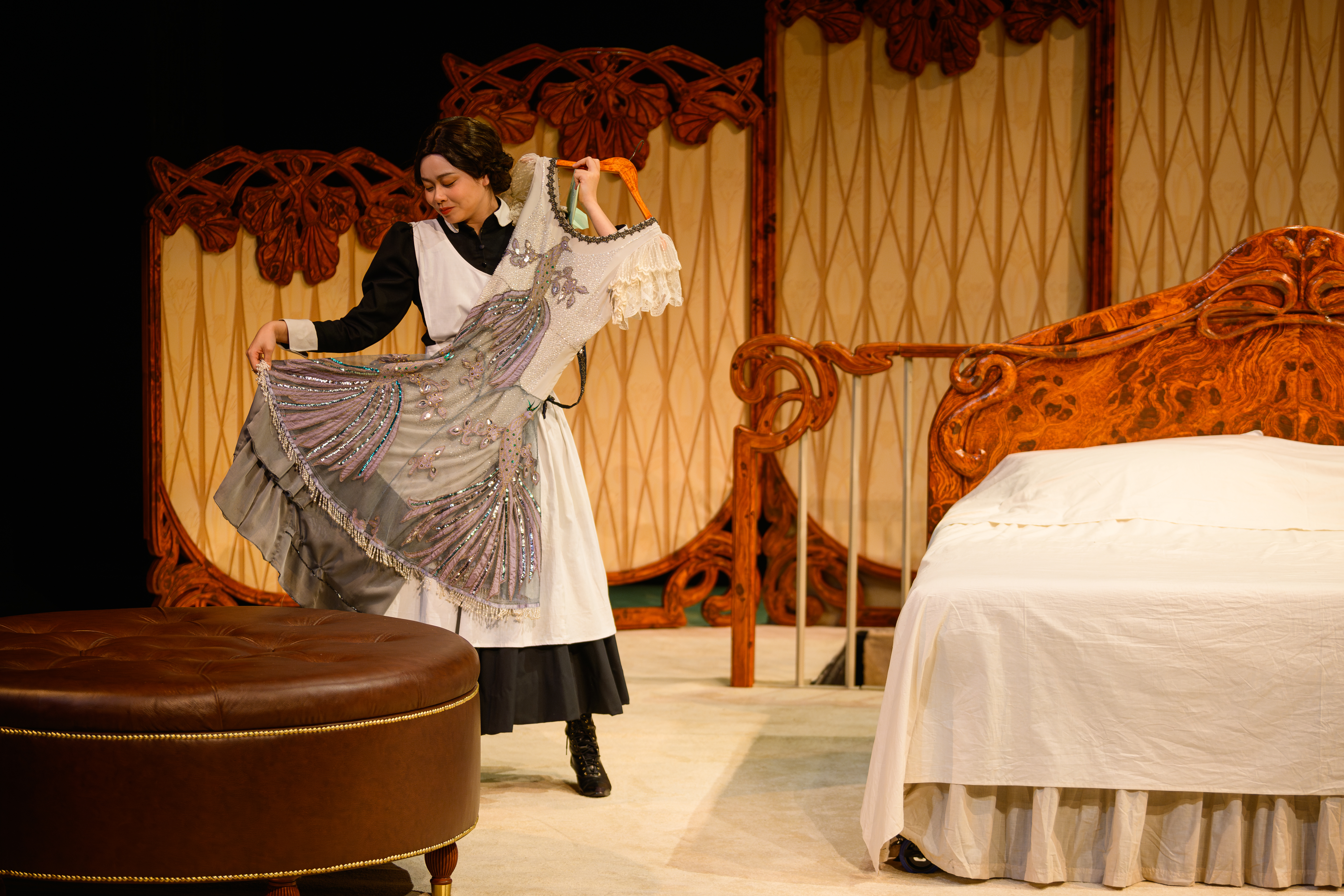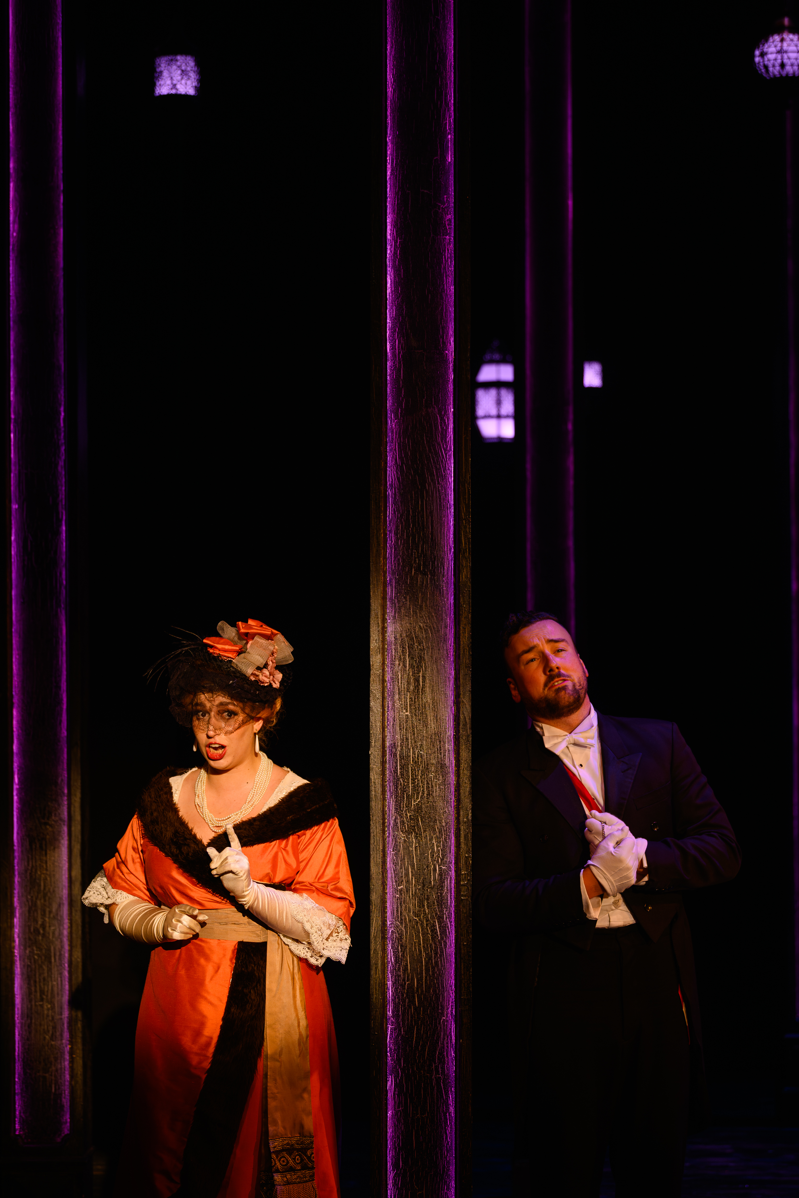 Scenic painting for Die Fledermaus, (2024). Designed by Adam Wiltshire for Silk Street Theatre (GSMD). Photography by David Monteith-Hodge.
