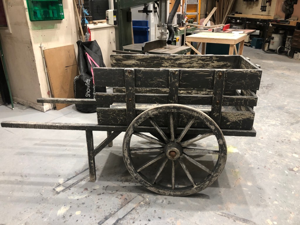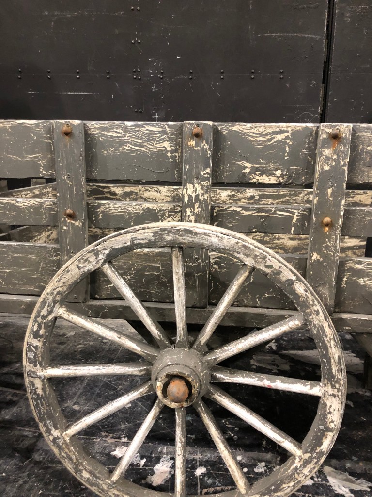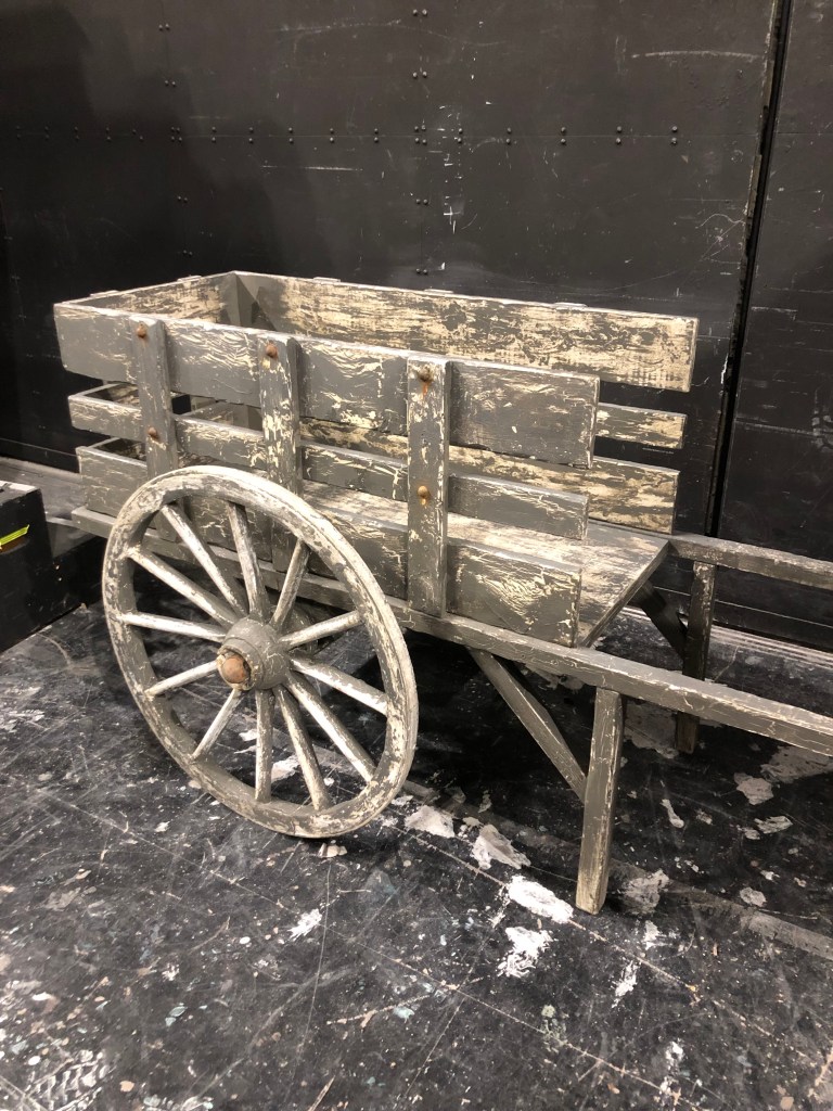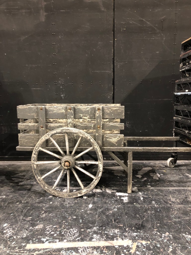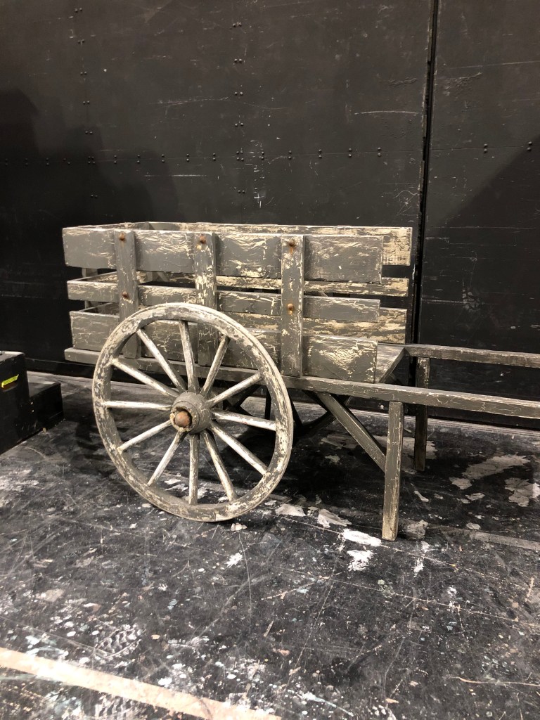 Wooden hand cart constructed and painted for A Star Next to the Moon (2024). Designed by Anna Reid for Silk Street Theatre (GSMD). Photography by David Monteith-Hodge.